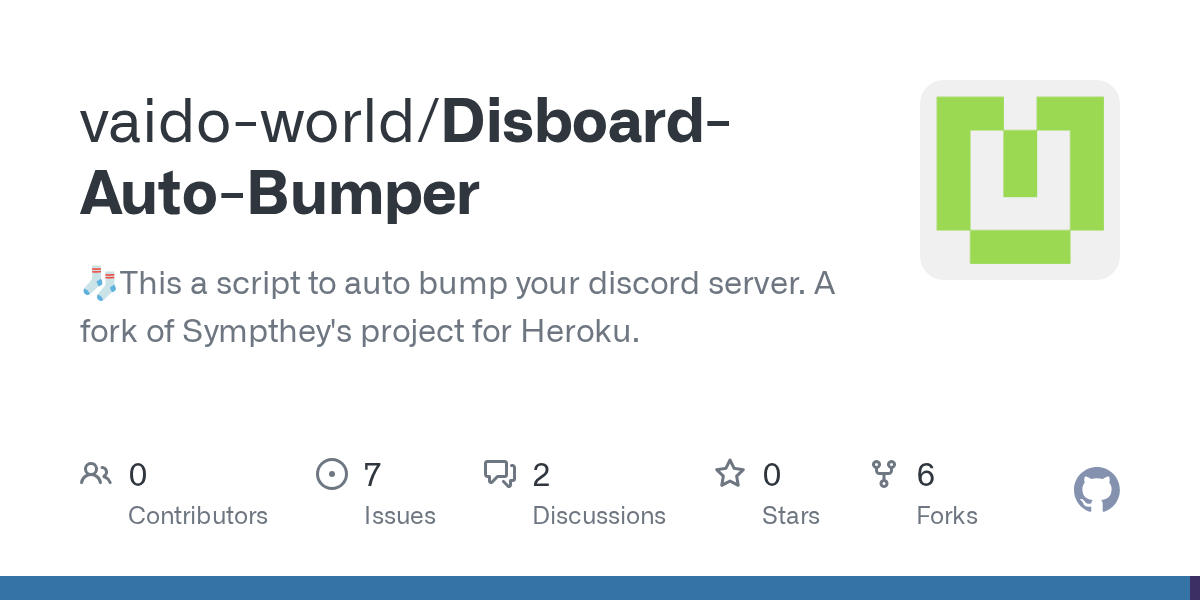 This a script to auto bump your discord server. A fork of Sympthey's project for Heroku. - GitHub - vaido-world/Disboard-Auto-Bumper: This a script to auto bump your discord server. A for...